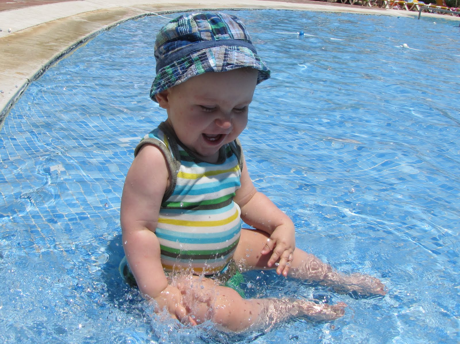 A estreia do Caleb na água foi assim. Assustou-se com a aproximação ao mar da primeira vez, mas depois foi um sarilho para o tirar de lá de dentro, todos os dias.