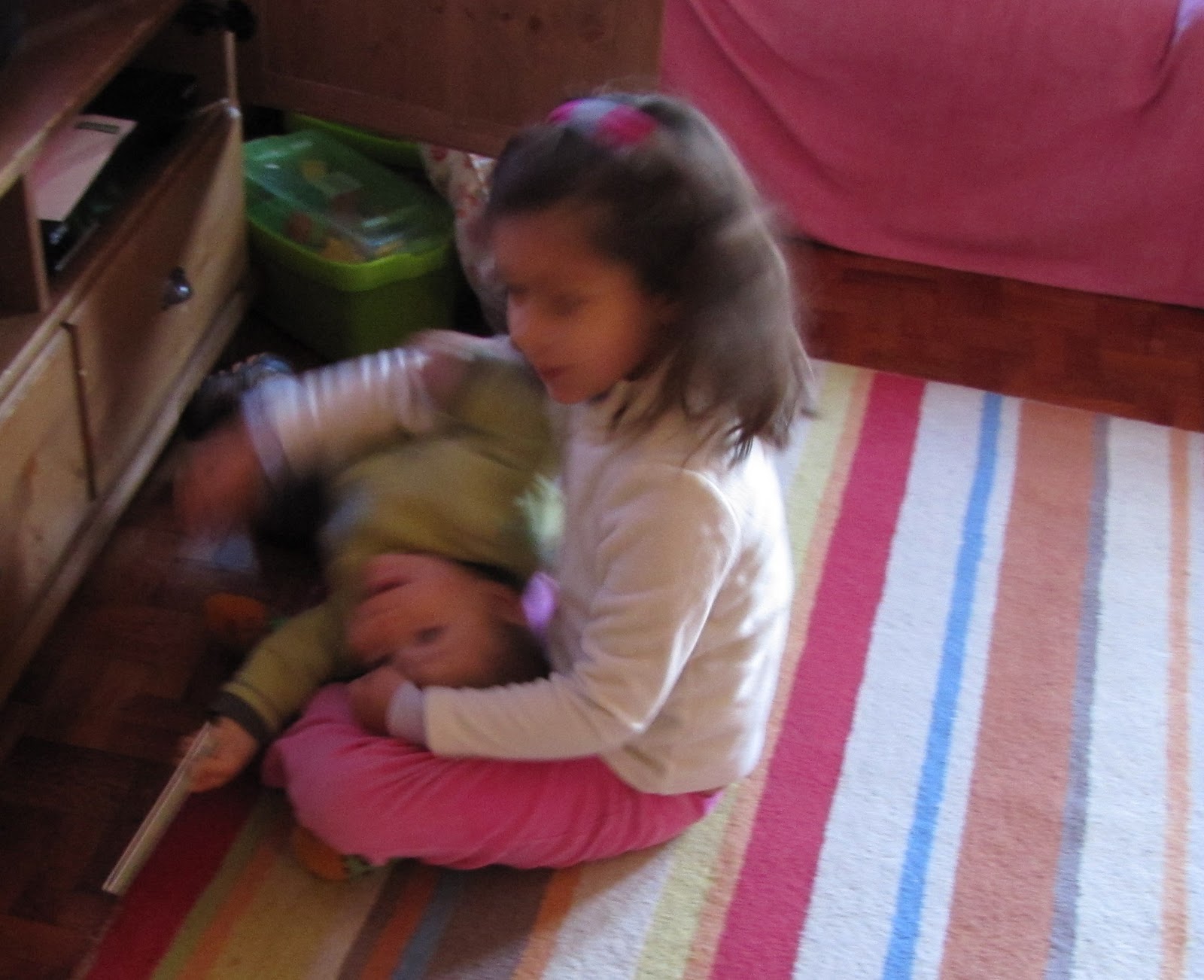 A Marta tem estado adoentada desde a madrugada de sábado. Mas nada que lhe tire muito a disposição (foi sempre assim). A diferença de ter a Marta em casa é que o Caleb faz muito menos disparates, porque ela tem a paciência de o incluir nas brincadeiras dela, e assegurar que ele não asneira em demasia.